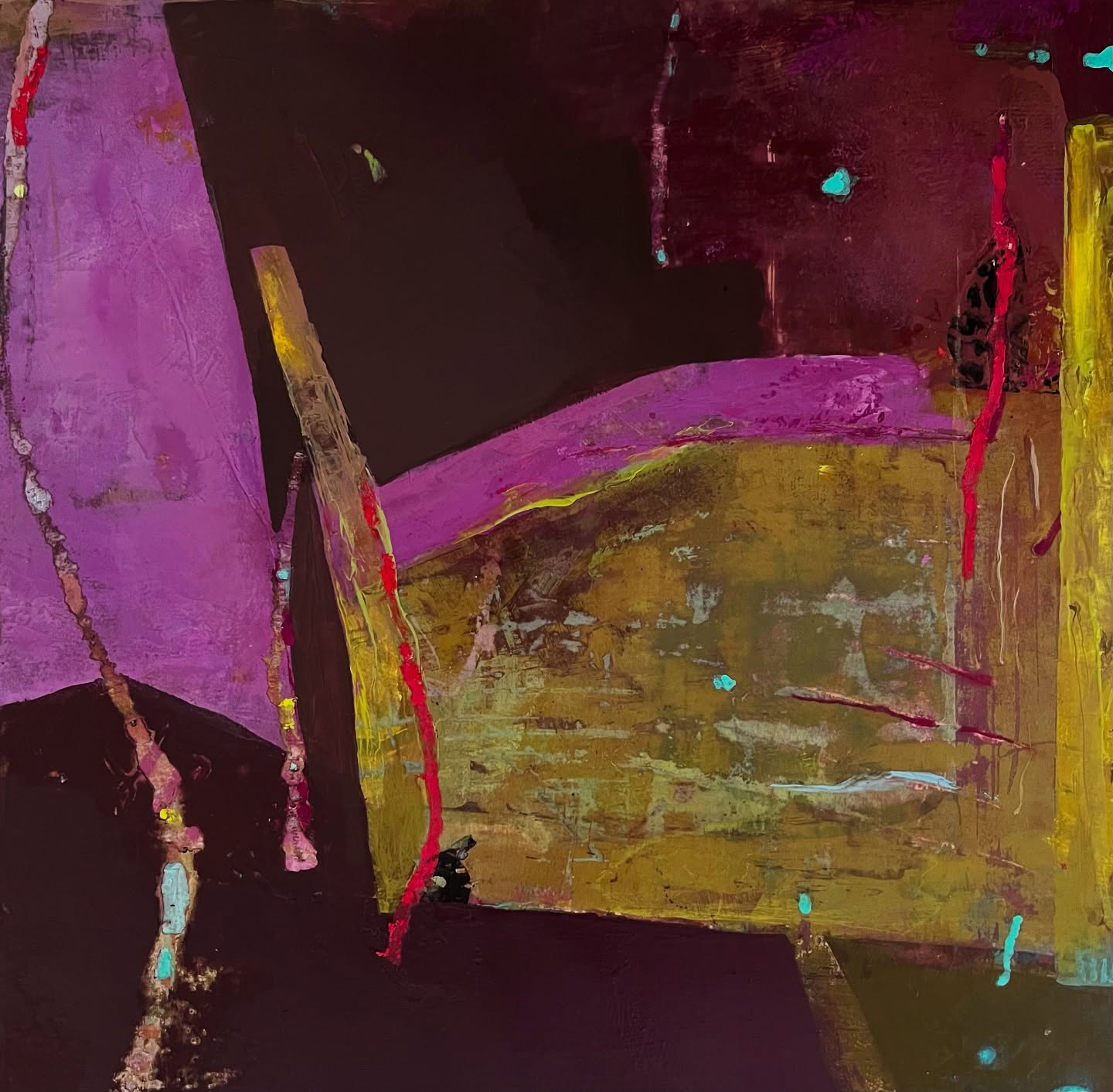 Bring the feeling of autumn indoors with this vibrant, color-forward artwork inspired by the excitement of seasonal change—rich purples and warm tones that capture “fall in the air,” even when the weather still feels like summer.